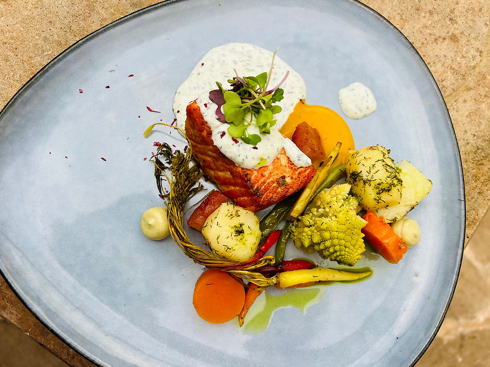 Valentines LachsANOA Chantal & Ronald16. Feb.1 Min. LesezeitMit NaN von 5 Sternen bewertet.Tzatziki, kartoffel mit dill, kürbis, ananas in sangria fermentiert, Gemüse.